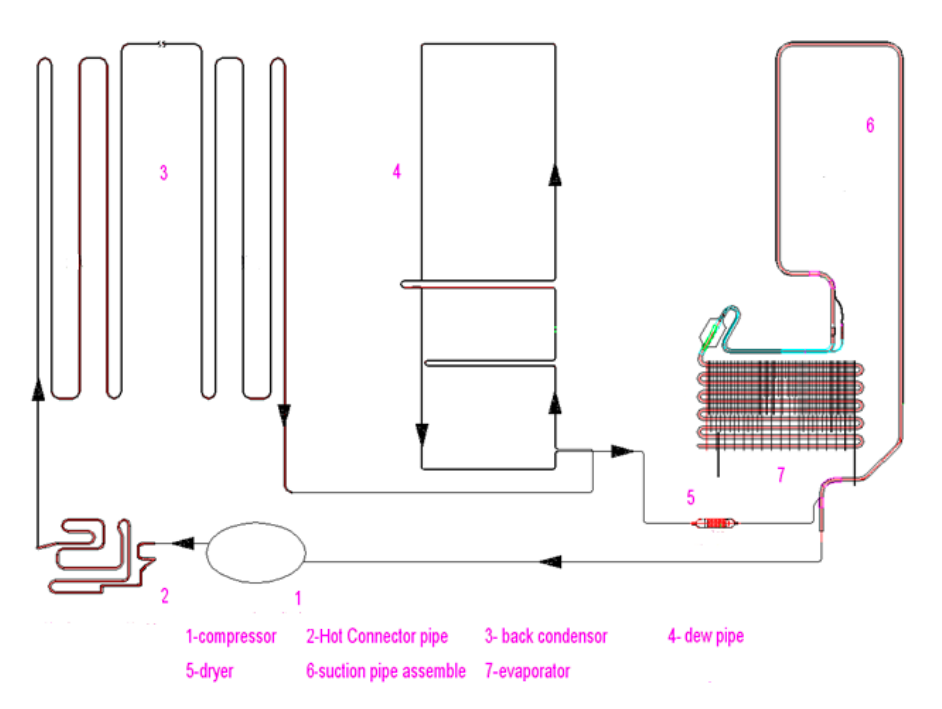 Холодильная система одноконтурного холодильника с прямым охлаждением относится к категории однотемпературных систем с одним испарителем и управляется одним контроллером температуры.