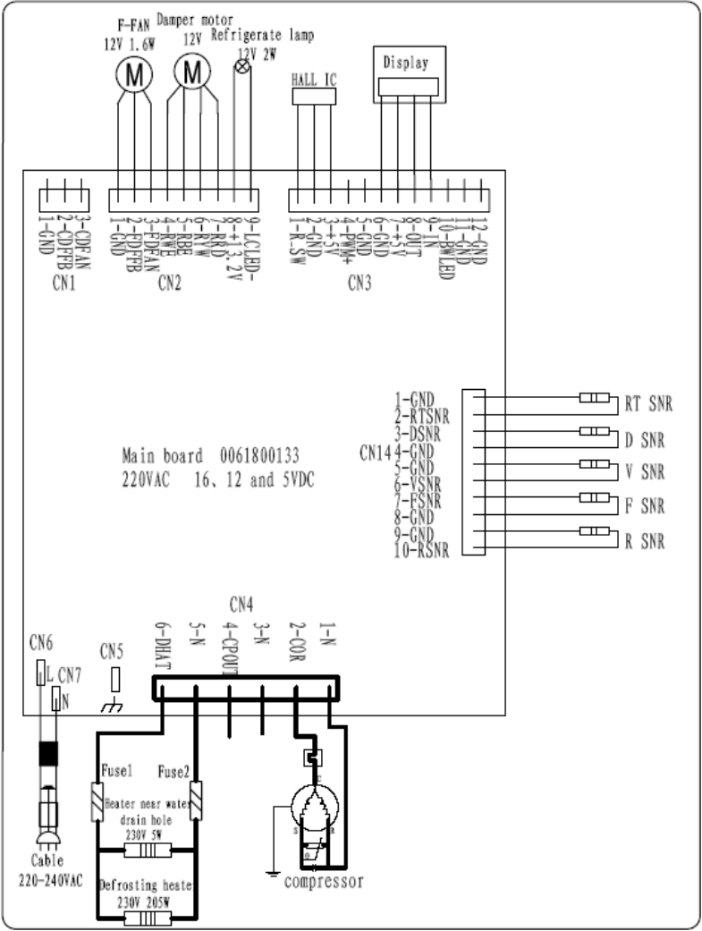 | AT SNR | F2 | Ошибка датчика температуры двери (короткое замыкание или обрыв цепи) | Корпус двери |