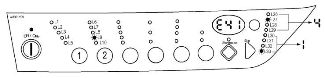 Индикация кодов неисправности выполняется с помощью последовательности миганий индикатора, расположенного над кнопкой СТАРТ/ПАУЗА, желтого и красного цвета (0,5 секунды включено, 0,5 секунды выключено, пауза между последовательностями 2,5 секунды). Индикатор СТРАТ/ПАУЗА желтого цвета - соответствует первой цифре кода неисправности (семейство). Индикатор СТАРТ/ПАУЗА красного цвета - соответствует второй цифре кода неисправности (номер в семействе). Эти два индикатора имеются на всех моделях.