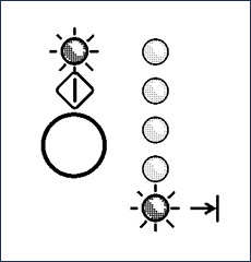 - Удерживайте нажатыми кнопку СТАРТ/ПАУЗА одновременно с любой из кнопок дополнительных функций в моделях с горизонтальным размещением кнопок или кнопки 2 и 3 в моделях с вертикальным расположением кнопок в течение двух секунд: индикаторы сначала гаснут, затем выполняется последовательность миганий, которая определяет код неисправности.