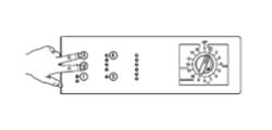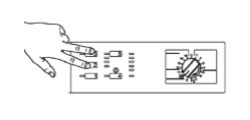 - Удерживая обе кнопки нажатыми, включите прибор, повернув селектор программ на одно деление по часовой стрелке.