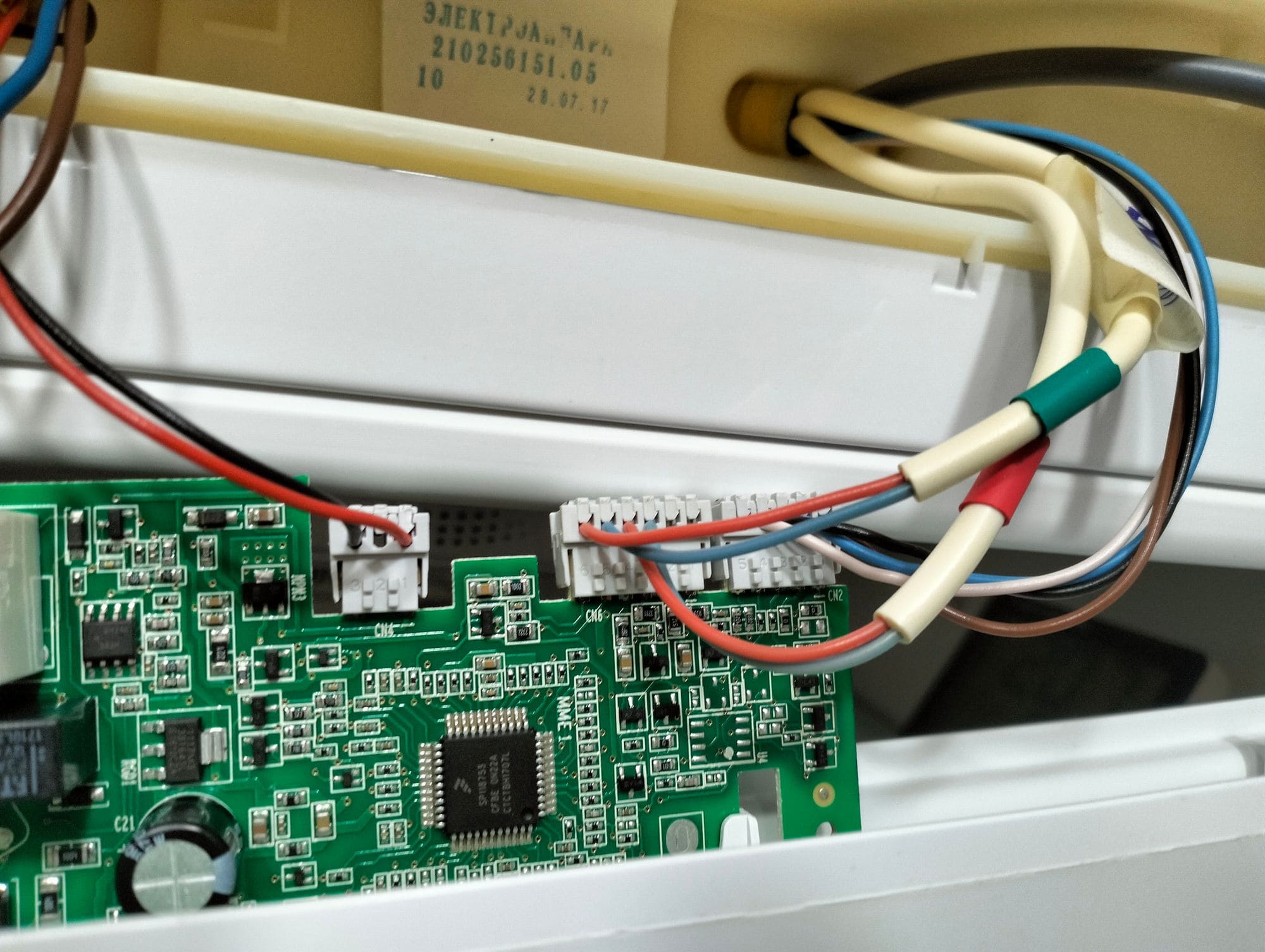 На фотографии представлен холодильник модели Hotpoint Ariston HF5180W, но он базируется на той же платформе, что и ваш прибор. В их конструкции используются вентиляторы с напряжением 12 В и датчики с сопротивлением 10 кОм при +25C°. Для замены неисправного датчика вам следует отрезать старый и припаять на его место новый. Я заказываю их на Aliexpress